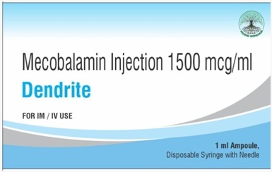 Dendrite INJ contains mecobalamin, a vitamin B12 form that supports nerve regeneration, treats neuropathies, and improves neurological function and overall nerve health.